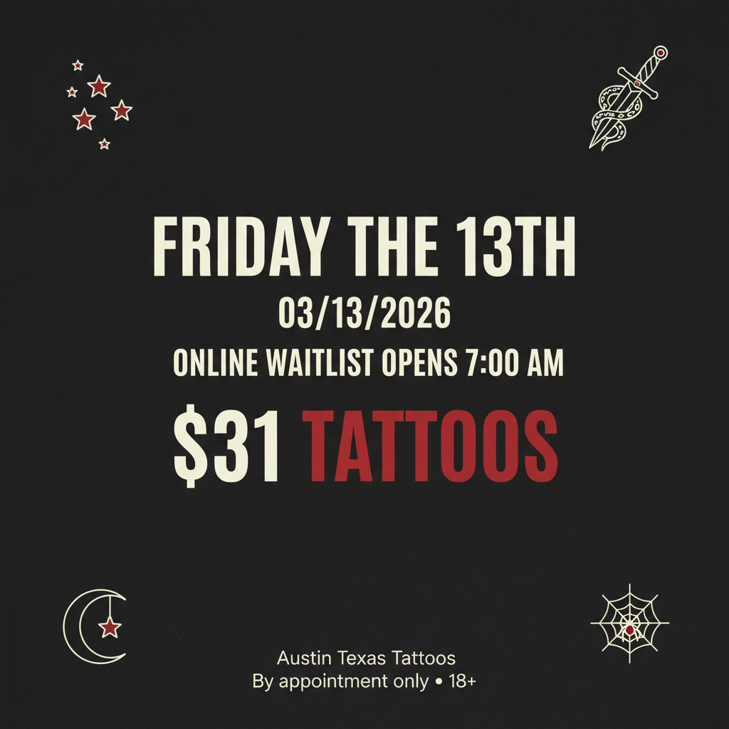 Friday the 13th is here and we’re doing flash tattoos for the event. Spots are limited, so the online waitlist opens at 7:00 AM—once it’s full, it’s closed.