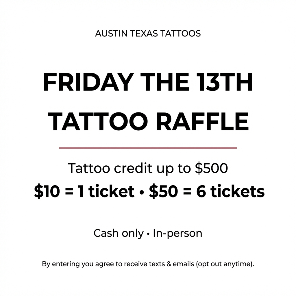 By entering, you agree to receive texts & emails from Austin Texas Tattoos (opt out anytime)**